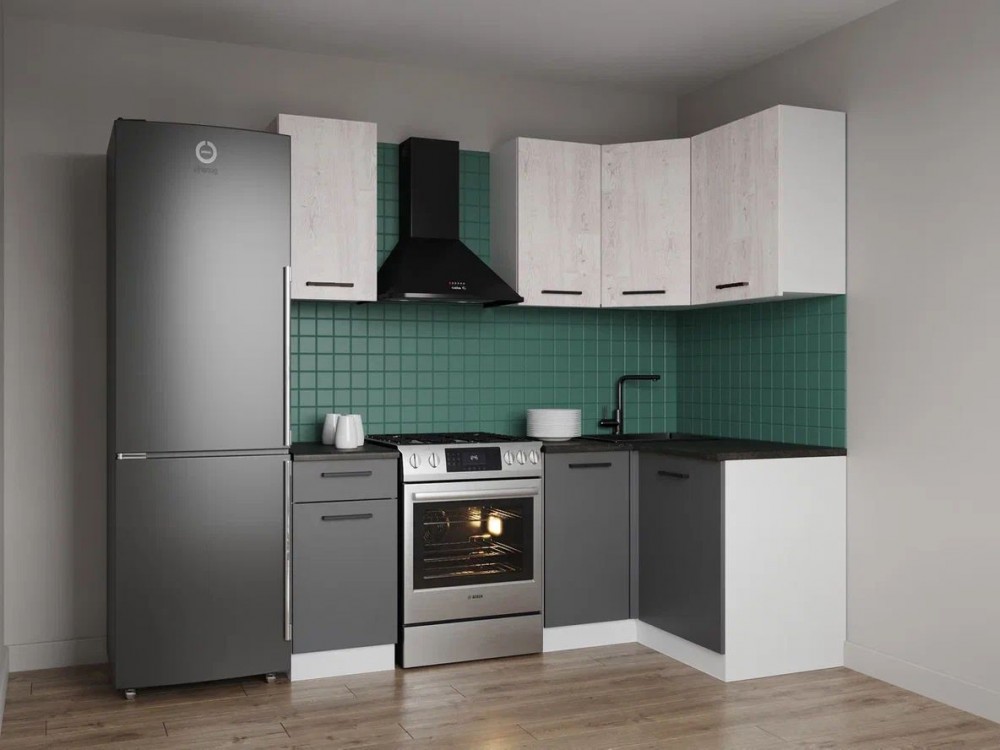 Интернет-магазин "Мебель 24" рад предложить Кухонный гарнитур угловой Санторини 2000*1200 (Стол. 38мм) по привлекательной цене, от производителя САНВУТ.