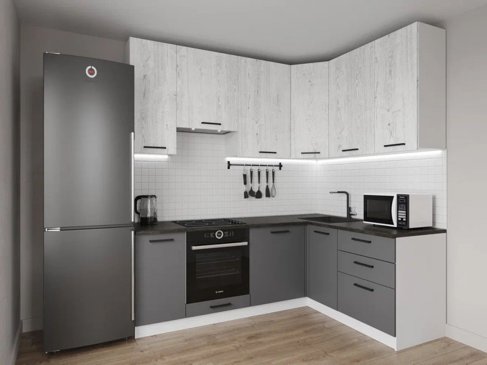 Интернет-магазин "Мебель 24" рад предложить Кухонный гарнитур угловой Санторини 2200*1600 h950 (Стол. 38мм) по привлекательной цене, от производителя САНВУТ.